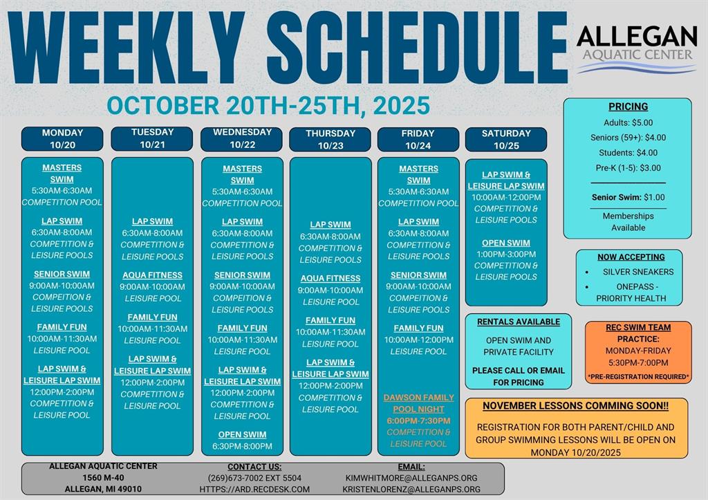 Pool Schedule 9/22-9/27 - Monday, September 22, 2025